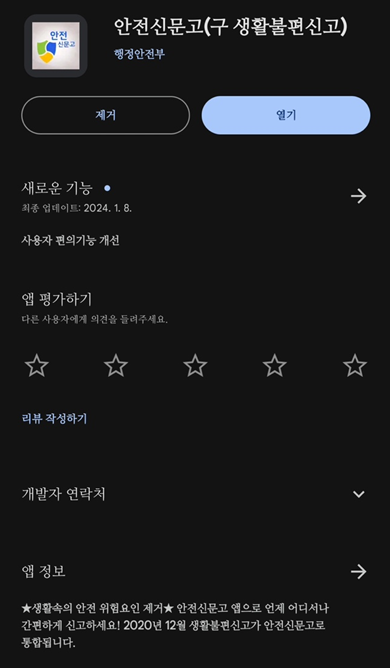 안전신문고 어플을 통해 신고를 하게 되면