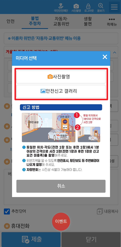 안전신문고 어플을 통해서 불법주차 신고를 할 수 있으며,