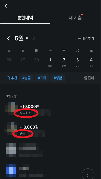 카카오페이 송금 취소를 하면 송금 취소가 완료되었어요. 라는 문구와 함께 취소가 완료된다. 머니 사용 내역으로 들어가면 송금 취소된 것을 확인할 수 있을 것이다. 다시 한번 말하지만 이 모든 카카오페이 송금 취소를 하기 위해서는 상대방이 받지않은 경우에만 가능하다. 혹시 상대방이 받았다면 다시 돌려달라고.. 말해보도록 하자.^^