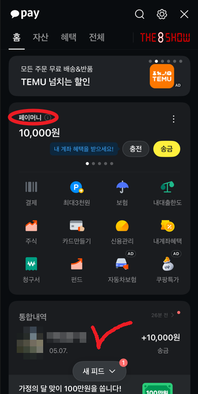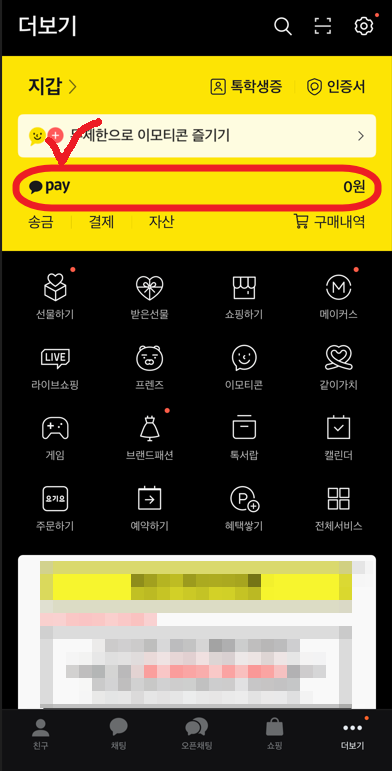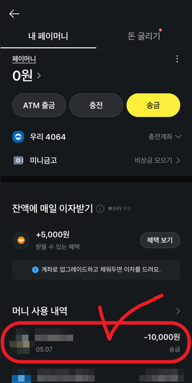 앞서 말한 카카오페이 송금 취소방법으로 충분하겠지만 추가적인 방법 하나를 알아보자면, 우측 하단에 있는 더보기를 눌러 카카오페이로 들어가 보자. 머니 사용 내역을 눌러 송금 취소가 가능하고 페이머니로 들어가면 송금한 내역이 전체적으로 보이며 여기서 송금한 내역 중 선택을 하여 취소가 가능하다.