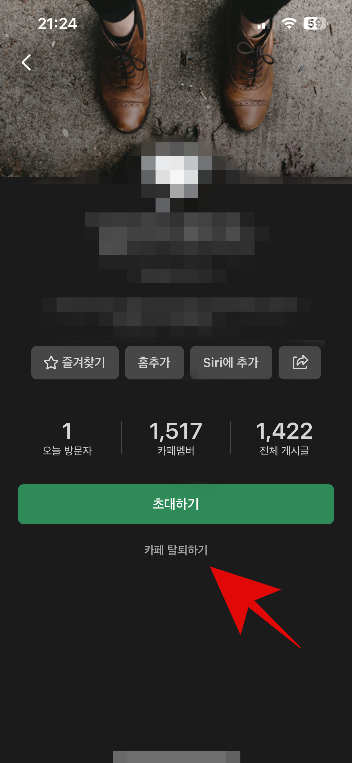 모바일이 은근히 찾기가 어렵다. 하지만 이 글을 한번 본다면 네이버 카페 탈퇴를 쉽게 할 것이다. 탈퇴하고 싶은 네이버 카페에 들어가서 우측상단의 삼선탭이 아니라 카페명을 눌러보자. 그러면 카페에 대한 설명과 함께 하단에 카페 탈퇴하기가 보일 것이다.