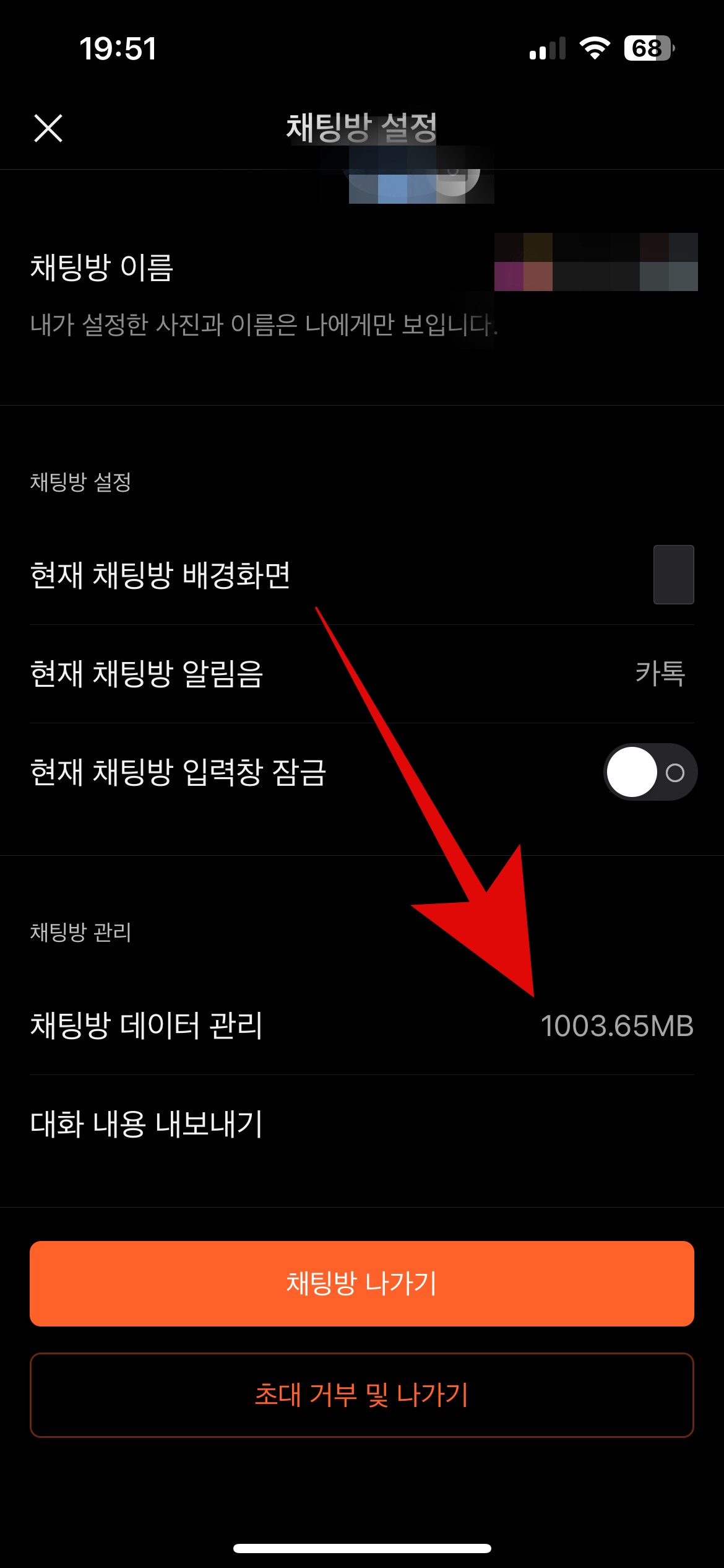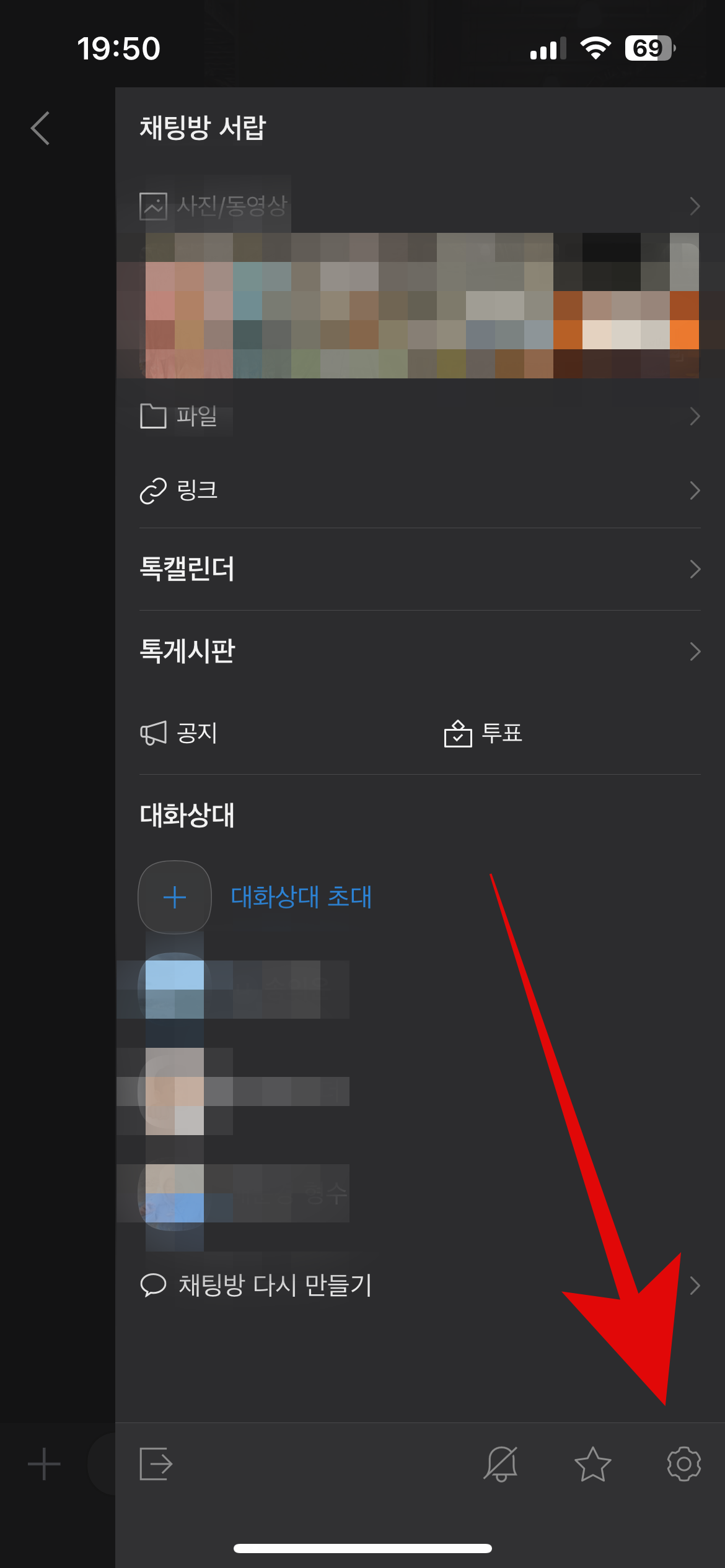 마지막 방법으로 카카오톡 사진, 동영상들을 정리하는 방법이다. 단톡방이 많은 사람일수록 많은 저장공간을 확보할 수 있을 것이다. 사진이나 동영상을 많이 주고받았던 카톡방으로 들어가서 우측 상단에 있는 삼선탭을 눌러보자. 그 후 아래의 톱니바퀴 모양을 눌리면 현재 이 카톡방에 쌓인 데이터를 볼 수 있을 것이다.