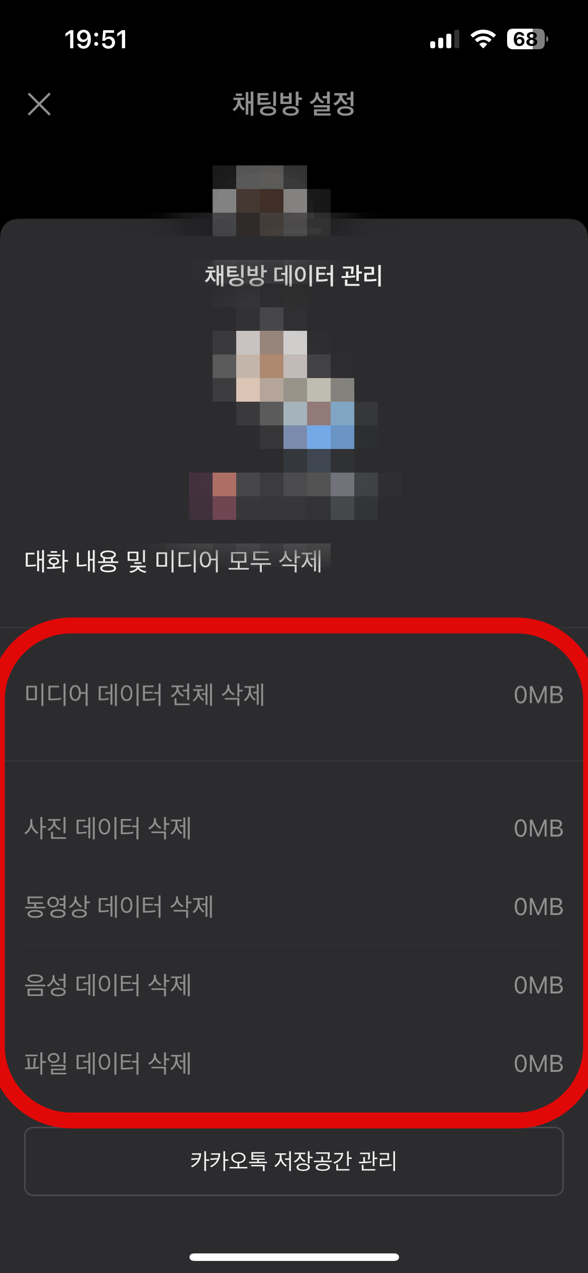 그리고 하단에 있는 카카오톡 저장공간 관리로 들어가게되면 어떤 항목이 가장 용량을 많이 차지하는지를 확인할 수 있다. 아래에는 누구와의 카톡방에 얼마나 용량을 사용하고 있는지도 확인이 가능하니 정리할 카톡방을 위 방법과 같이 정리를 해주면 된다. 카톡방을 나가도 정리가 되지만 나가지 않고 정리하는 좋은 방법이다.