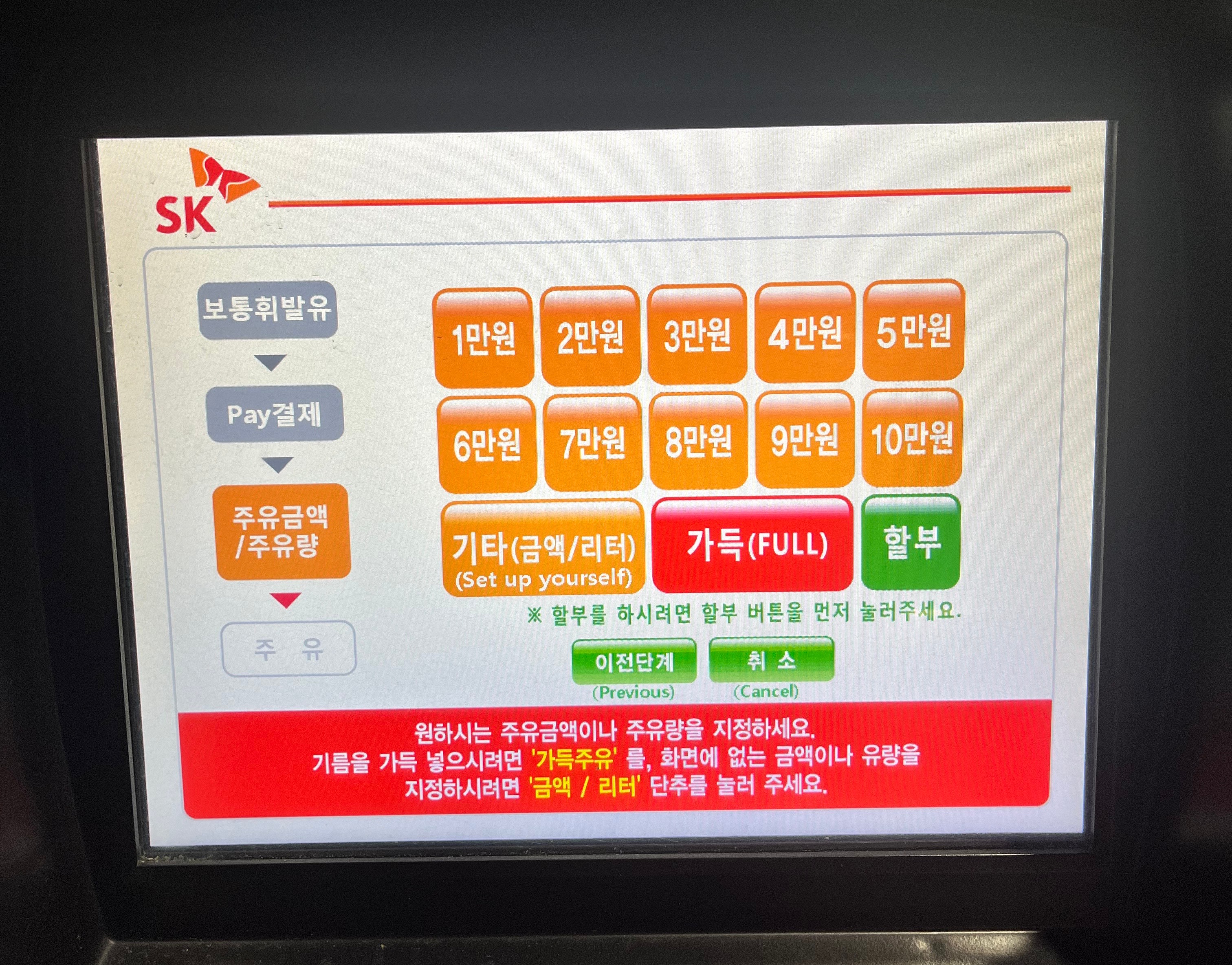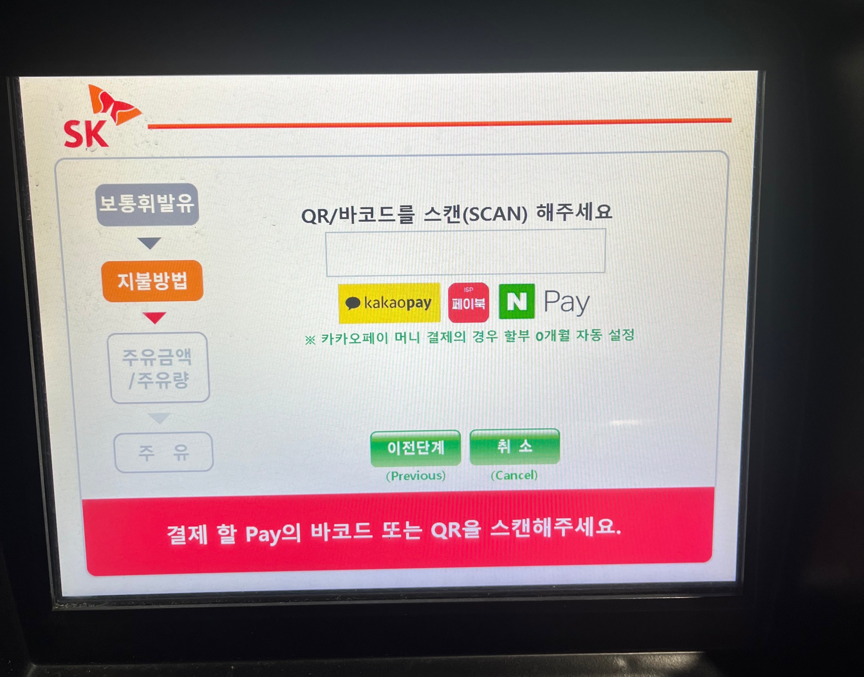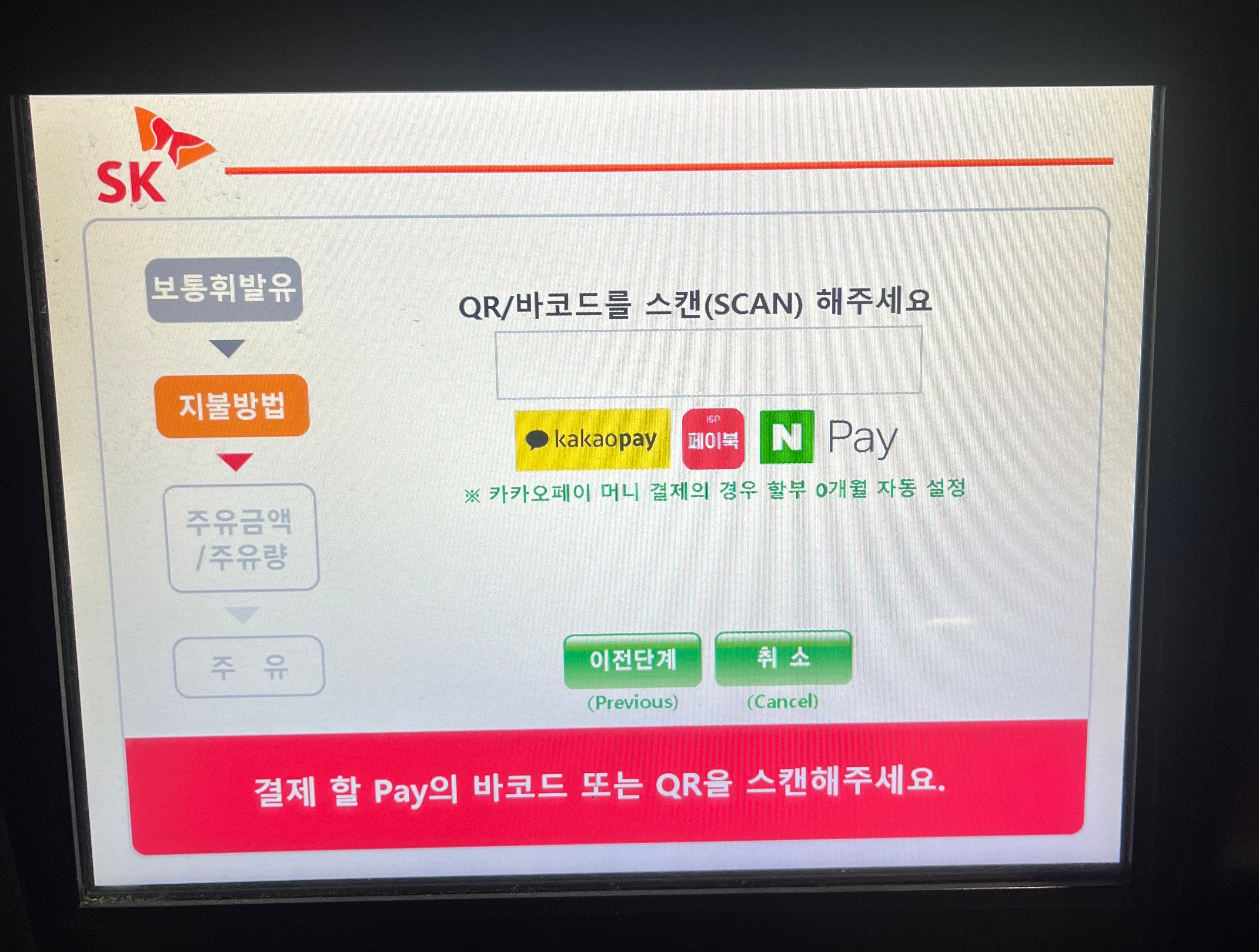 모든 셀프 주유소가 카카오페이 결제를 할 수 있는 것은 아니다. 결제 가능한 지점이 점점 생기는 추세이다. SK주유소와 GS칼텍스가 카카오페이 결제가 가능한 주유소가 많은 것 같다.