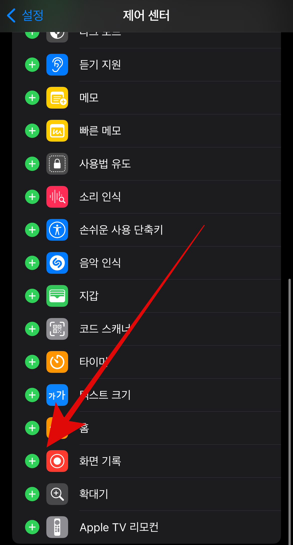 아이폰 화면녹화를 하는 방법은 매우 간단해서 사진과 말로도 충분히 설정을 할 수 있을 것이다. 설정에 들어가서 제어센터로 들어간다. 다양한 기능을 제어 센터에 넣을 수 있으며 여기서 화면 기록 왼쪽의 +버튼을 눌러 추가시키도록 하자. 이렇게 하면 설정이 끝나고 사용하는 방법은 더욱 간단하다.