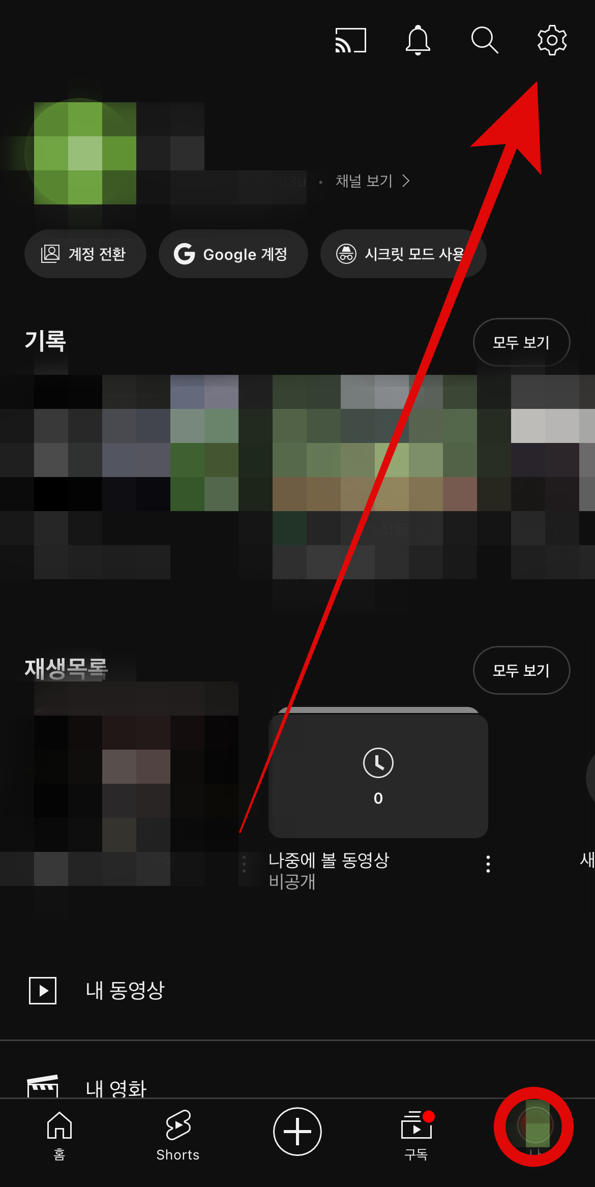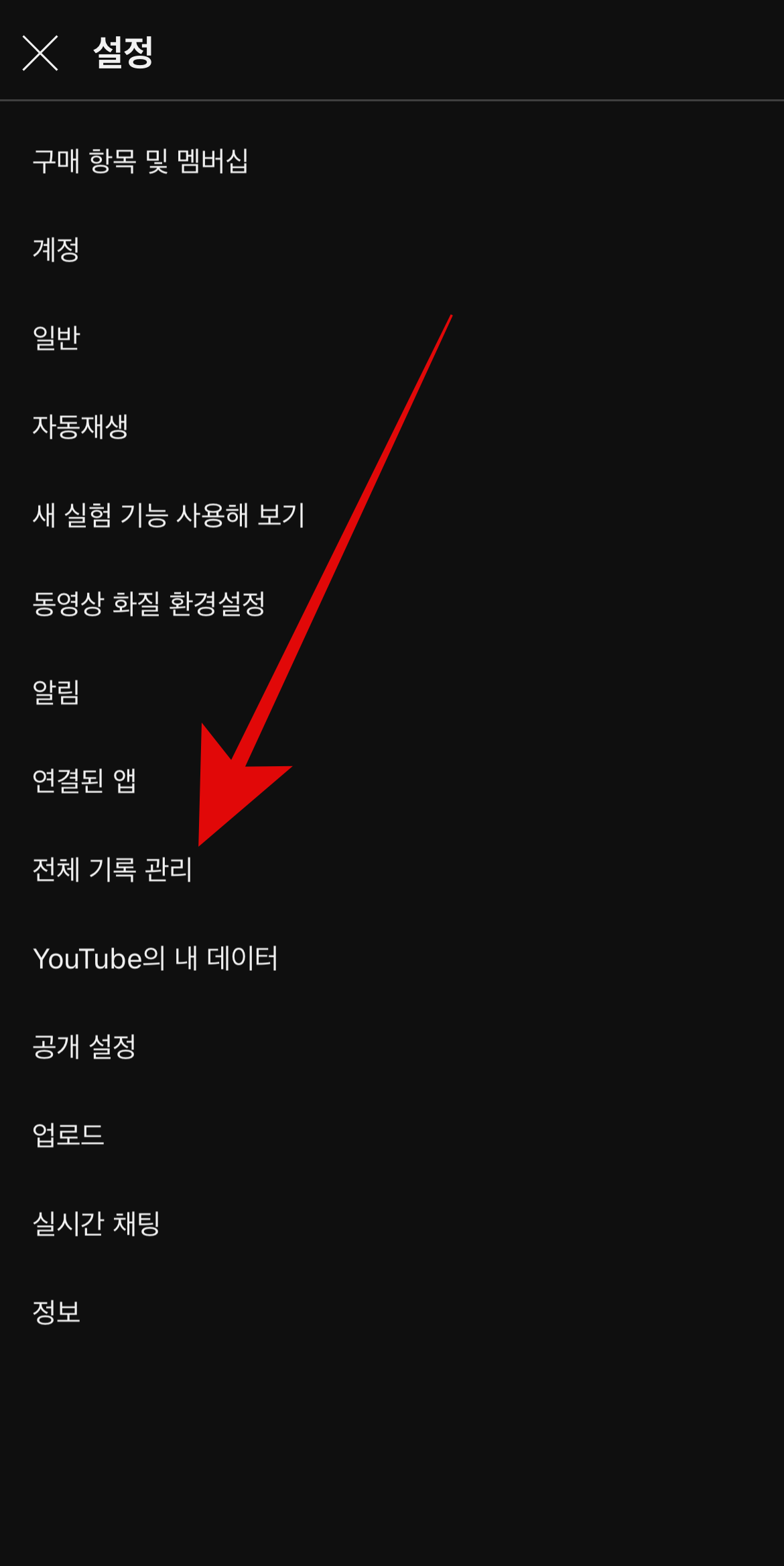 유튜브에 들어가서 오른쪽 밑에 있는 나의 프로필로 들어간다. 그리고 오른쪽 위에 있는 톱니바퀴(설정) 탭을 눌러 들어가면 중간쯤에 전체 기록 관리라는 탭이 있을 것이다. 전체 기록 관리에서 유튜브 내가 쓴 댓글, 좋아요 누른 영상 등등을 관리할 수 있다.