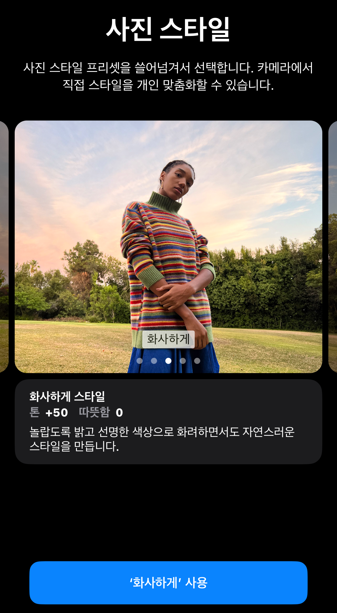 사진을 정말 정성들여 찍었는데 아이폰이 자동보정을 하여 사진이 가끔 이상해질 때가 있다. 아이폰은 더 화사하고 밝고 선명하게 사진을 만드는 것이 더 예쁘게 나온다고 인식이 되어있는 것 같다. 이렇게 아이폰 자동보정 끄기 몇 가지 방법이 있다. 첫 번째로 설정할 수 있는 방법으로는 사진스타일 설정이다.