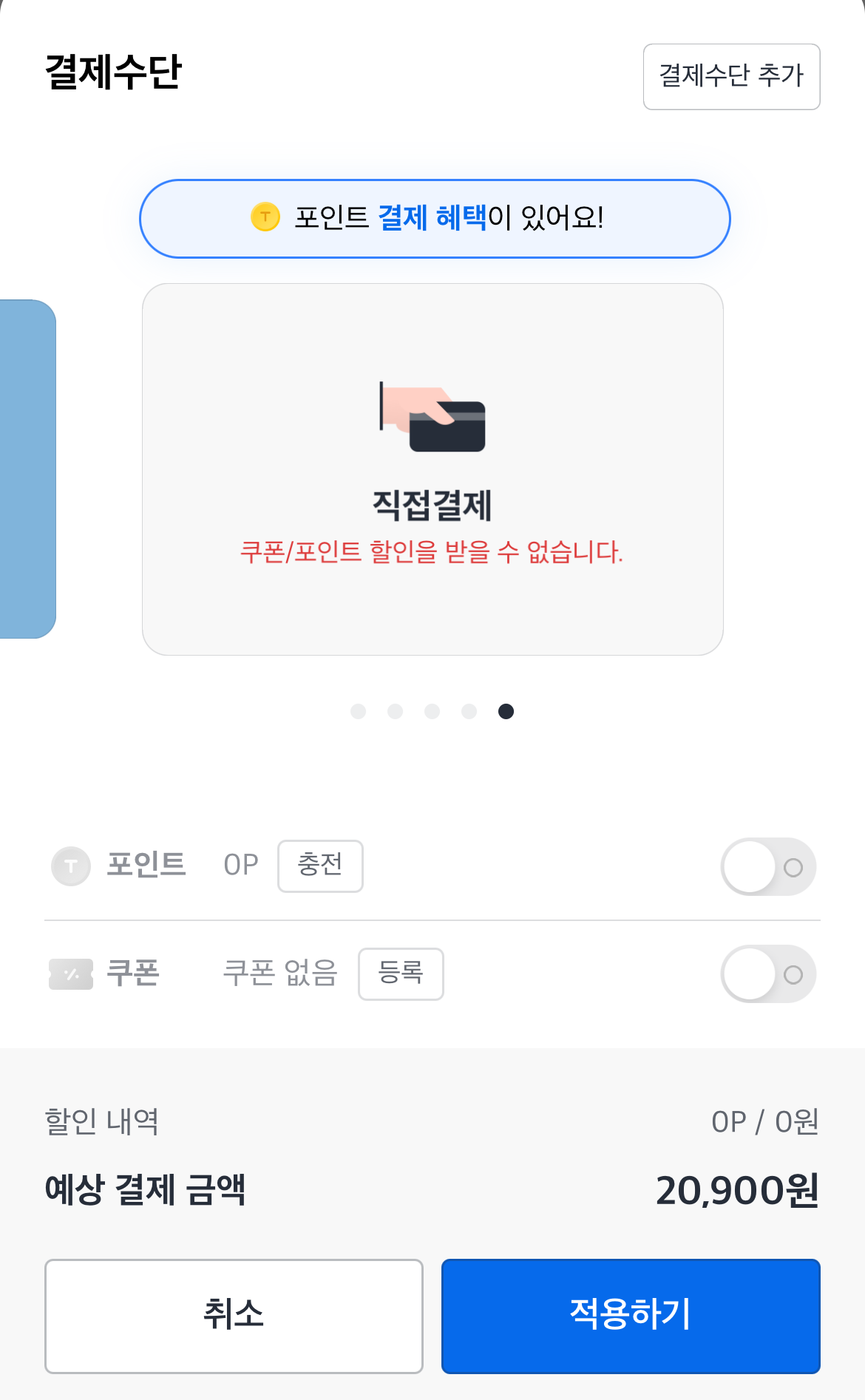 결제수단을 선택해 놓았는데 직접결제를 하고 싶다면 호출을 하기 전, 중간에 있는 결제수단을 눌러보자. 그러면 등록해 놓은 결제수단들을 볼 수 있을 것인데 여기서 오른쪽으로 넘기면 직접결제가 있을 것이다. 이렇게 호출을 하면 택시 이용이 끝나고 내리기 전에 직접 결제를 하고 내리면 된다. 호출 취소 하는 방법은 배차되기 전이라면 우측 상단에 있는 호출취소를 누르면 된다. 배차가 되고 1분이 지난 후 호출 취소를 하면 수수료가 부과되니 참고하도록 하자.