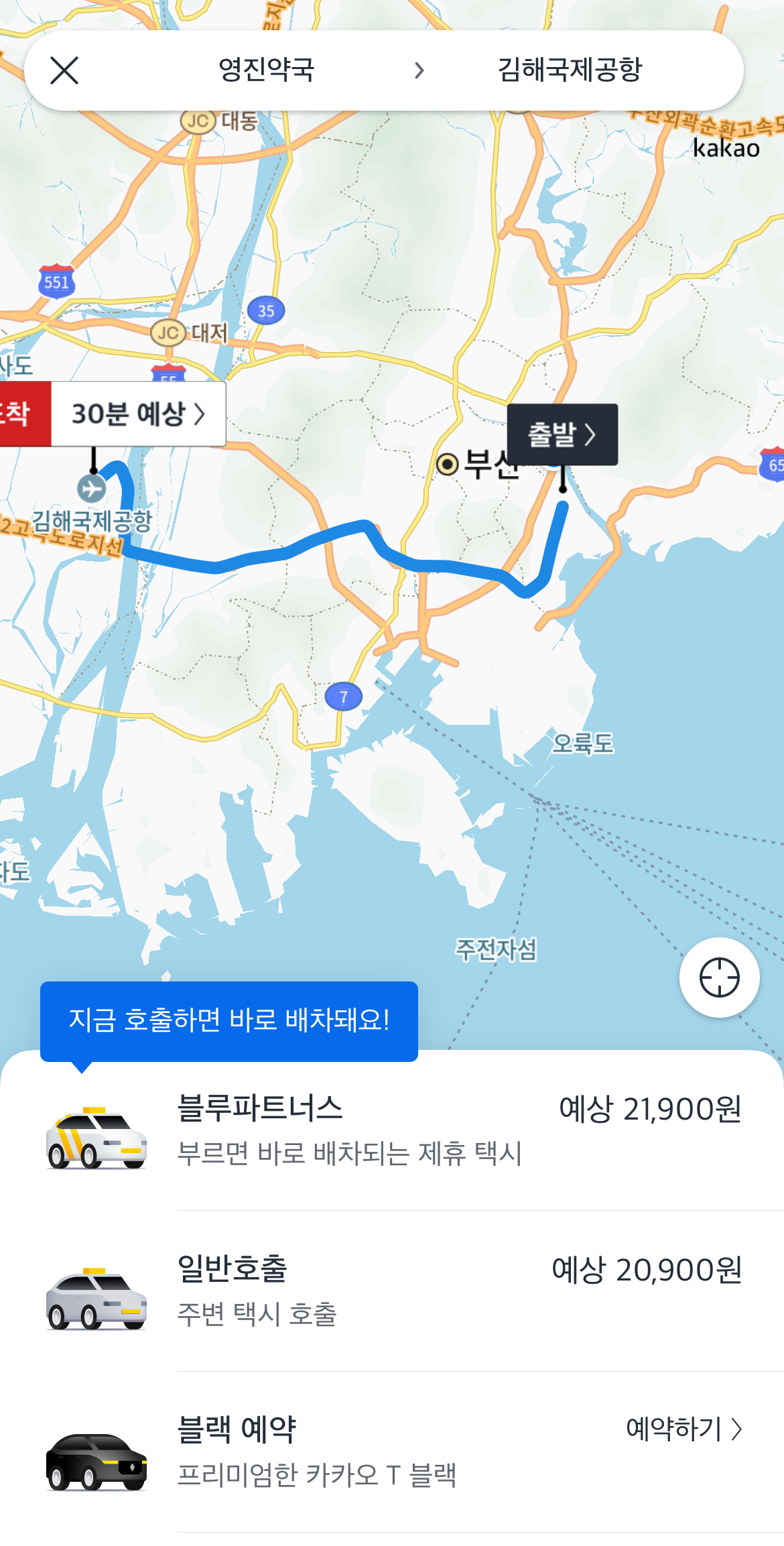 카카오택시 사용법 마지막 단계로 호출을 하면 되는데 블루파트너스, 일반호출, 블랙 예약 이렇게 3가지가 있을 것이다. 여기서 블루 파트너스는 추가금을 내고 빠르게 배차가 되는 택시이며 일반 호출은 주변에서 택시 기사님들이 수락을 해야 잡히는 것이다. 잡는 지역, 거리에 따라 추가금은 다르니 참고하도록 하자. 그리고 호출하기를 누르면 카카오택시 사용법 끝이다.