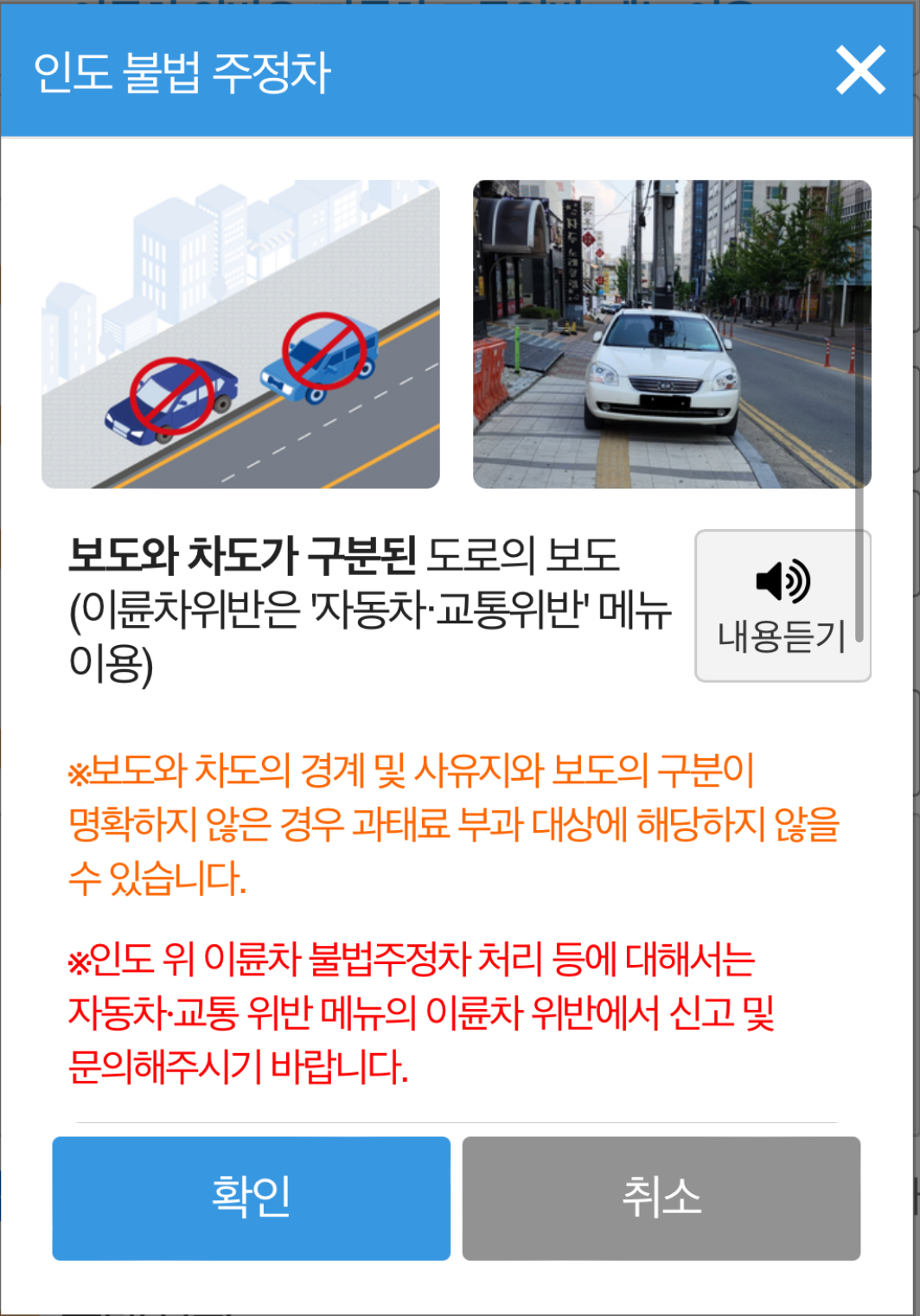 6. 보도와 차도가 구분된 도로의 보도에 정지 상태 차량