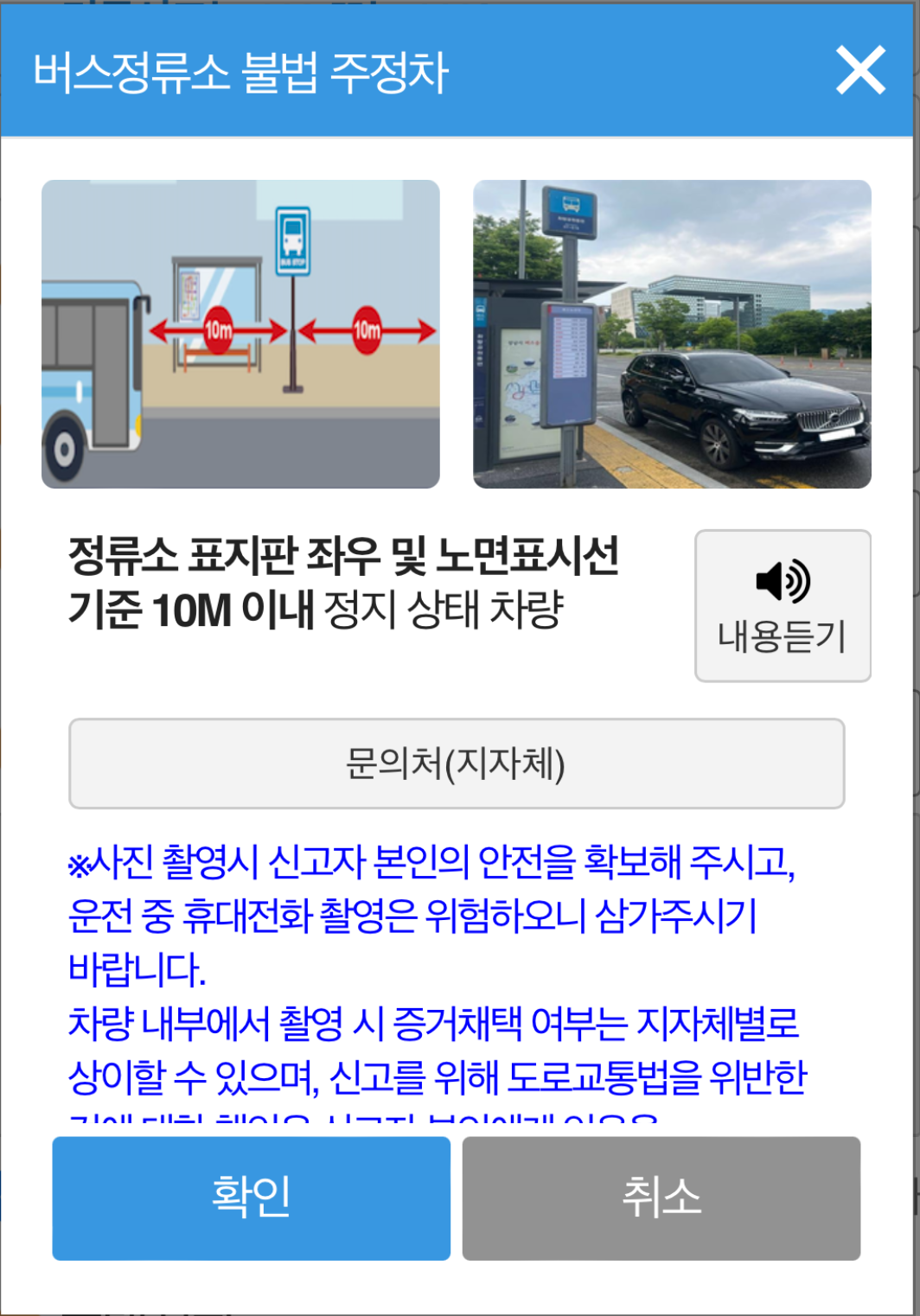 3. 버스 표지판 좌우 및 노면표시선 기준 10M 이내 정지 상태 차량