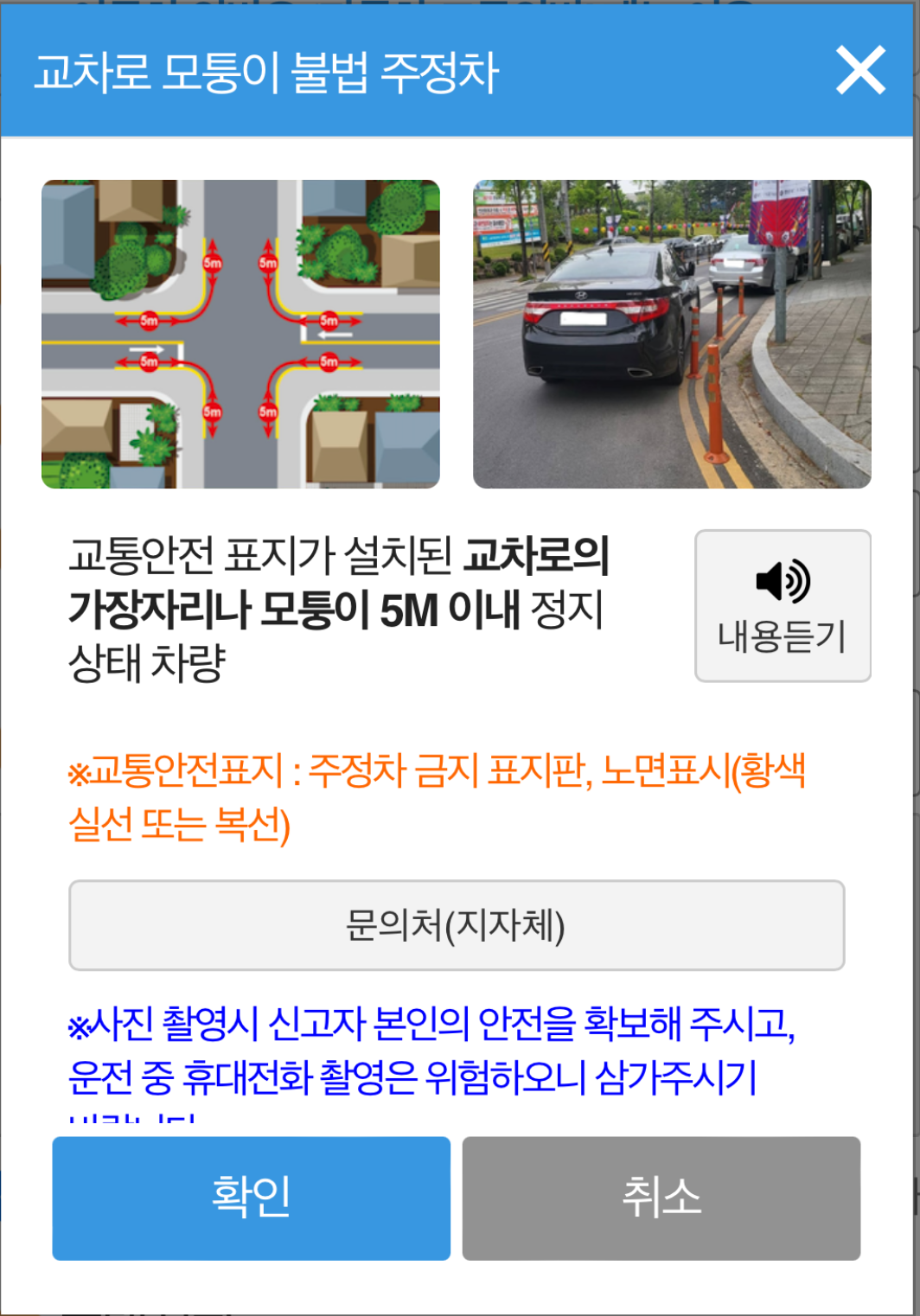2. 교차로의 가장자리나 모퉁이 5M 이내 정지 상태 차량