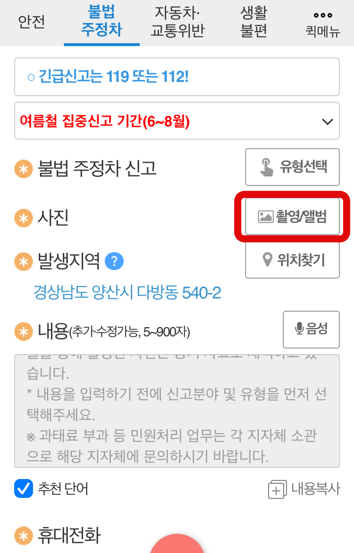 먼저, 불법주차 신고앱인 안전신문고(구 스마트국민제보)를 다운로드한다. 그리고 안전신문고 어플에 들어가서 상단 카테고리에 두 번째 불법 주정차 탭으로 들어간다. 그러면 불법주차 신고를 할 수 있는데 여기서 불법주차 신고방법에 대하여 자세히 하나하나 알아보도록 하자.